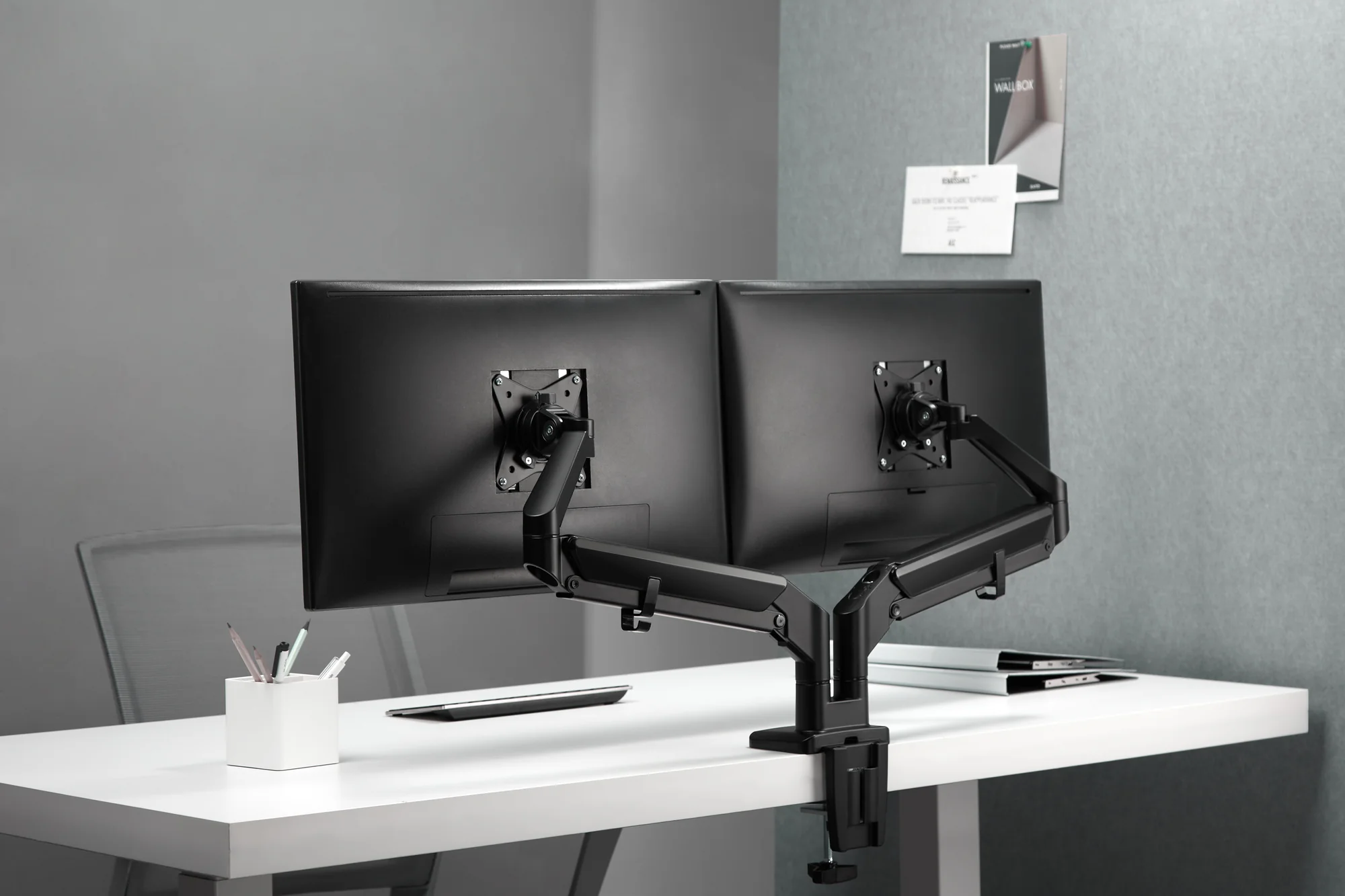 Med våre dual monitorarmer for to skjermer får du full fleksibilitet og god ergonomi.