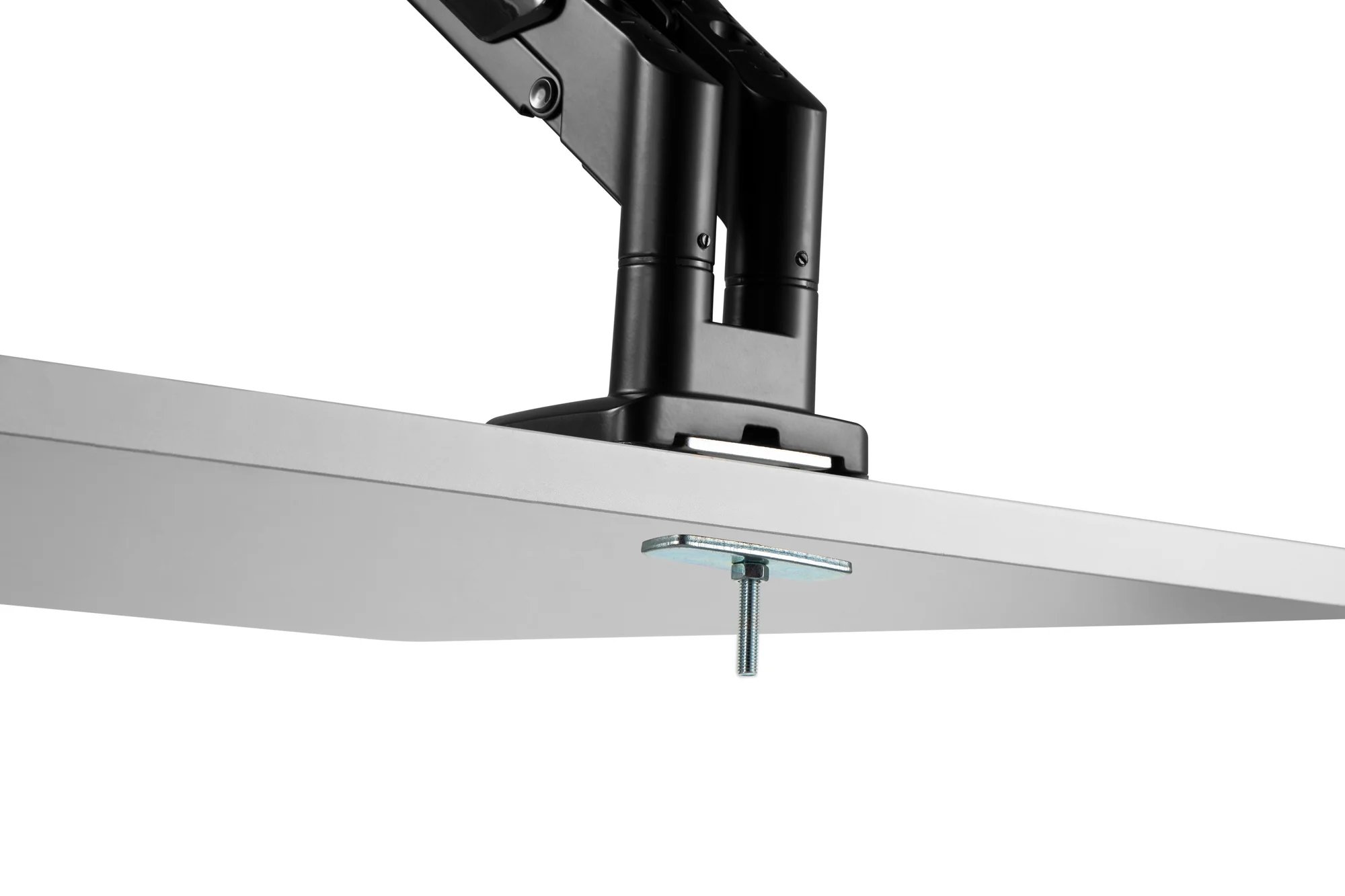 Med justering for tilt (+45°/-45°), sving (+90°/-90°) og rotasjon (+180°/-180°), kan du enkelt optimalisere ergonomien og redusere belastning. Armen har en rekkevidde på opptil 440 mm og støtter enkel montering med klemfeste eller gjennom-bord-løsning.