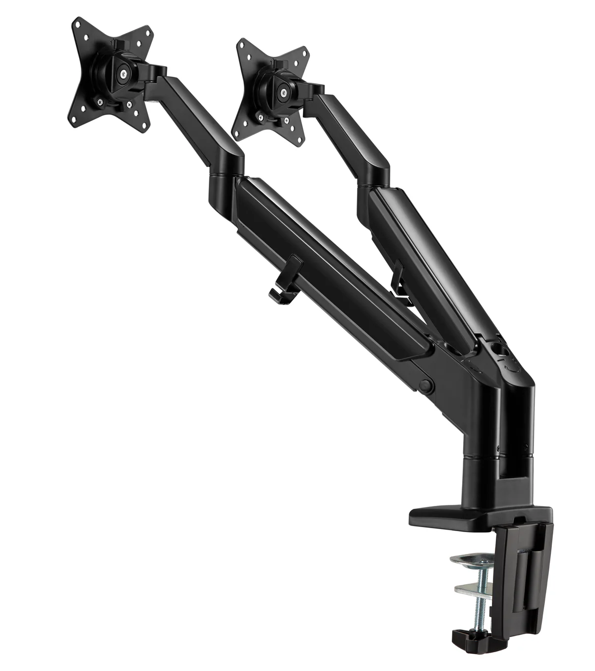 Gi arbeidsplassen din et løft med Kenson Dual Monitor Arm i elegant sort finish. Denne robuste og fleksible skjermarmen passer skjermer fra 17″ til 32″ (inkludert buede), og gir deg full kontroll over plassering og vinkel.