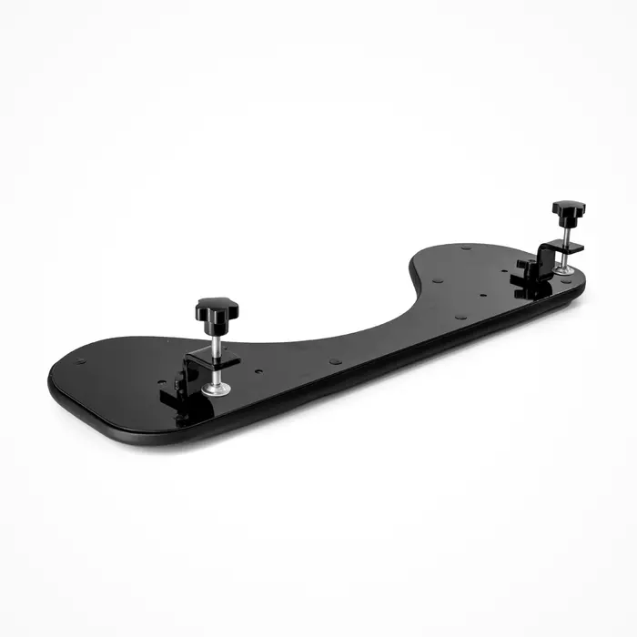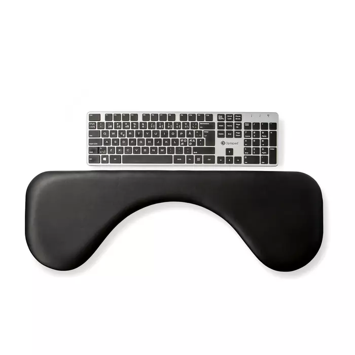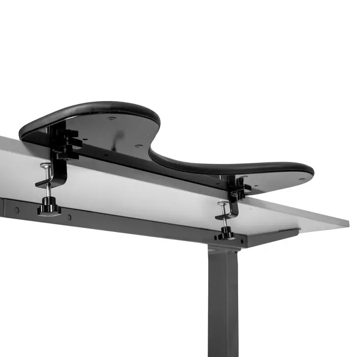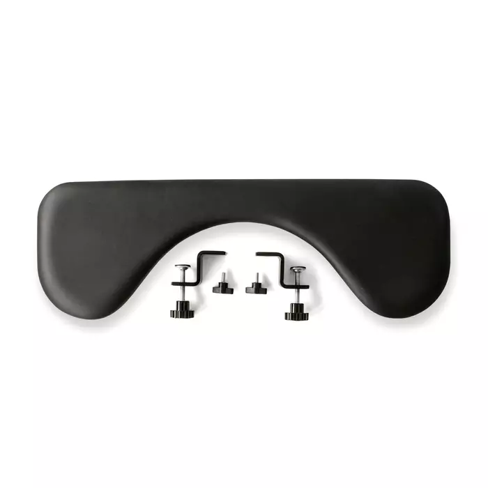 Underarmstøtten passer meget godt sammen med både våre ergonomiske datamus, vårt tastatur og tilsvarende produktløsninger fra andre produsenter i markedet. Produktet er av god kvalitet med underside i stål som gjør at den ligger stabilt på bordplaten. Underarmstøtten passer til skrivebord med både rett og buet form samt at den har et enkelt feste uten å måtte skru i bordplaten. Underarmstøttens festebraketter bygger ned kun 57 mm. Festebrakettene monteres direkte i støttens underside i stål med medfølgende unbrako-skruer. Festebrakettene er utstyrt med skruer slik at underarmstøtten kan klemmes fast på bordplaten, samt skruer for å kunne vinkle underarmstøtten i rett posisjon. Underarmstøtten har en vaskbar overflate.