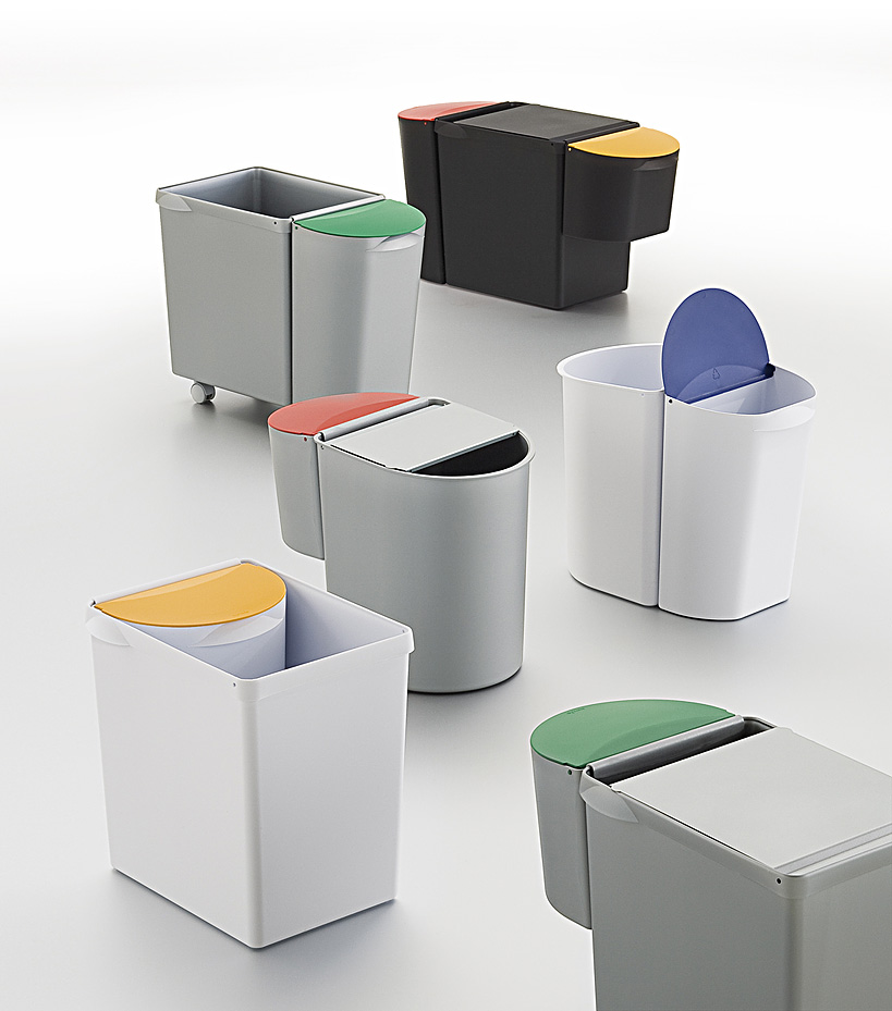 God løsning for i åpent kontorlandskap. Papir og avfall. Manade TRIBU-system er en kildesortering for arbeidsplasser i team eller i tilknytning til hverandre. Systemet består av en 26 liters bøtte, beregnet for papir og to mindre bøtter (5 og 9 liter) beregnet for organisk avfall. Bøttene kan hektes sammen til et system.